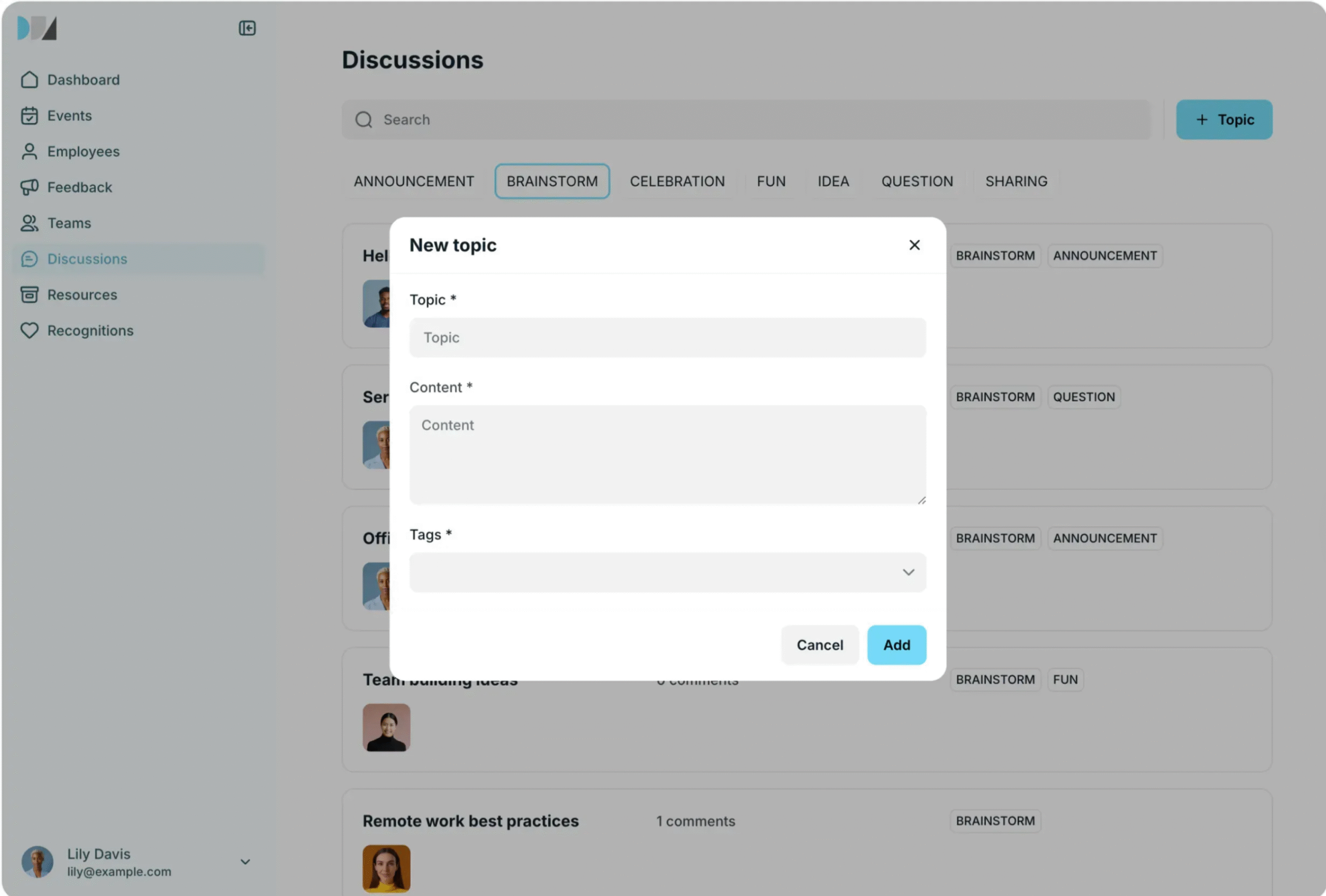 Schedule a consultation →Add your logo, set your brand colors, and connect your custom domain (e.g., intranet.yourcompany.com) in minutes.