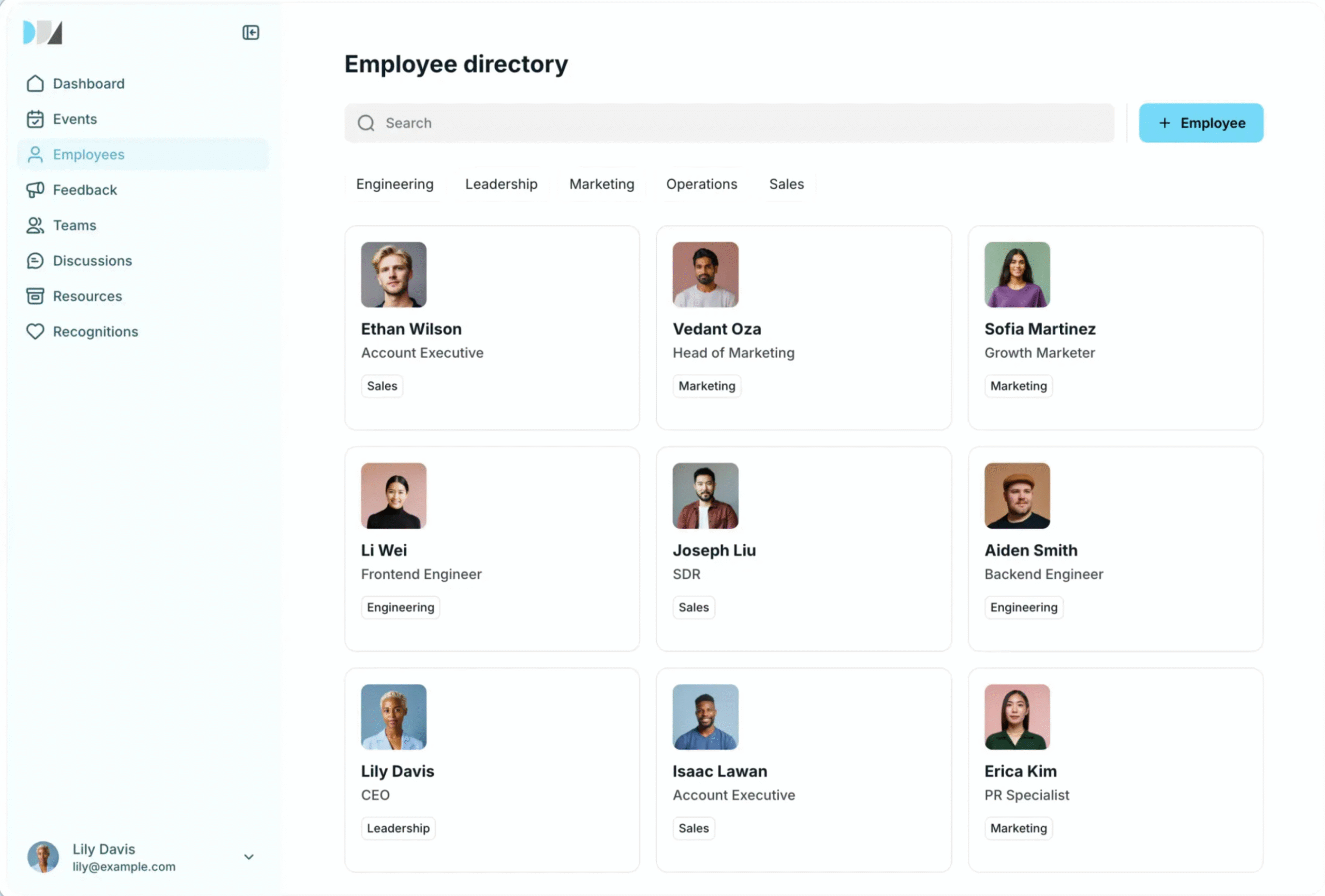 Yes. You can assign custom permissions so employees can update their profiles, submit feedback, or manage shared resources—without compromising system control.
